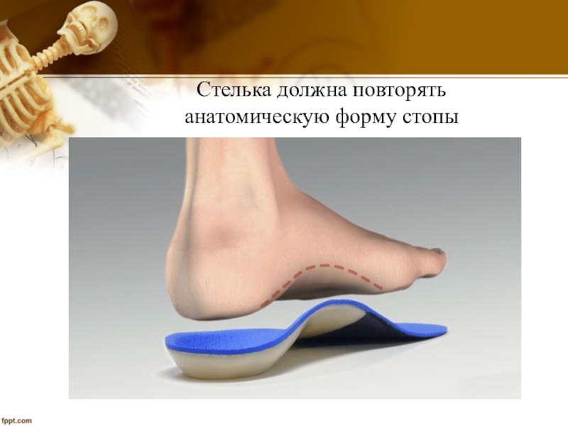 Слайд 9 Стелька должна повторять анатомическую форму стопы