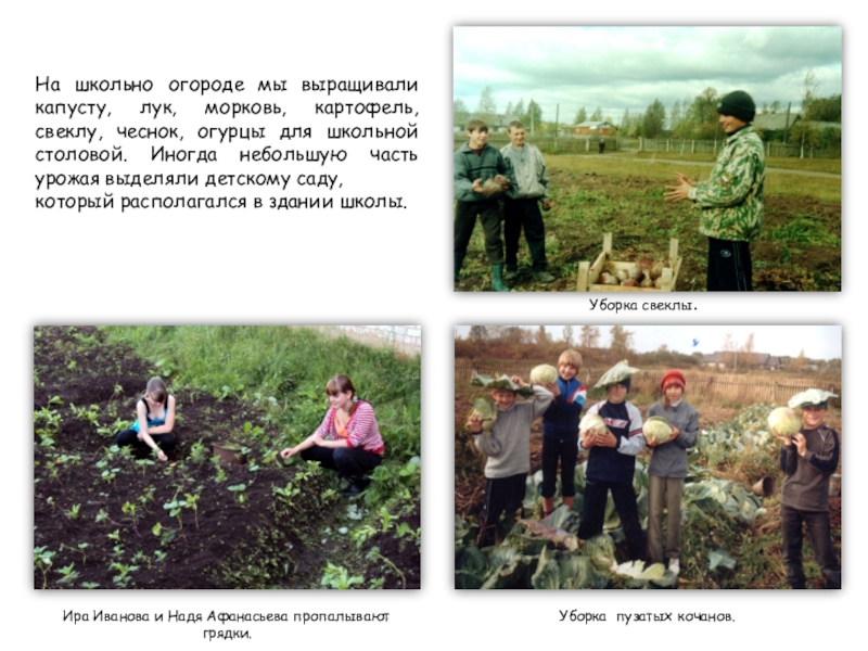 Ира Иванова и Надя Афанасьева пропалывают грядки.
