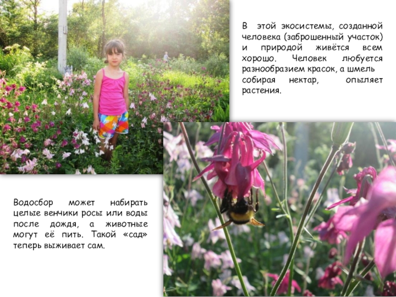 Водосбор может набирать целые венчики росы или воды после дождя, а животные могут её пить. Такой «сад» теперь выживает сам.