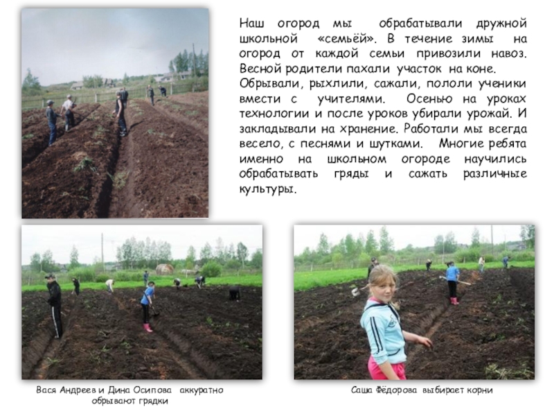 Вася Андреев и Дина Осипова аккуратно обрывают грядки