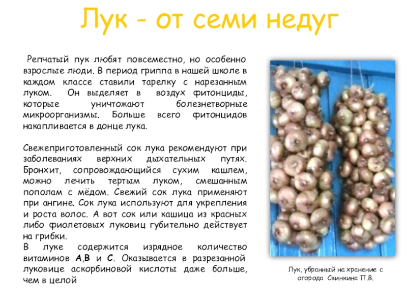 Лук, убранный на хранение с огорода Свинкина П.В.