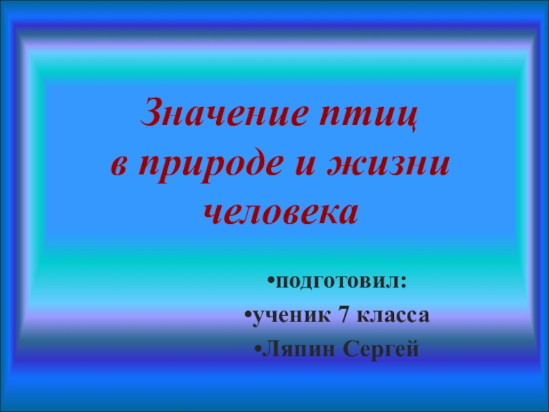 Значение птиц  в природе и жизни человекаподготовил:ученик 7 классаЛяпин Сергей