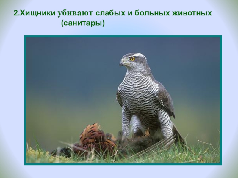 2.Хищники убивают слабых и больных животных          				(санитары)