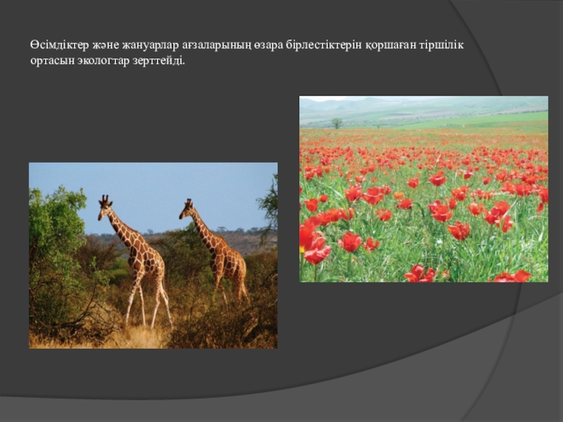 Слайд 3Өсімдіктер және жануарлар ағзаларының өзара бірлестіктерін қоршаған тіршілік ортасын экологтар зерттейді.