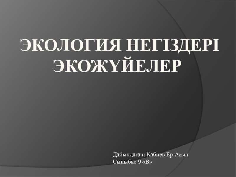 ЭКОЛОГИЯ НЕГІЗДЕРІЭКОЖҮЙЕЛЕРДайындаған: Қабиев Ер-АсылСыныбы: 9 «В»