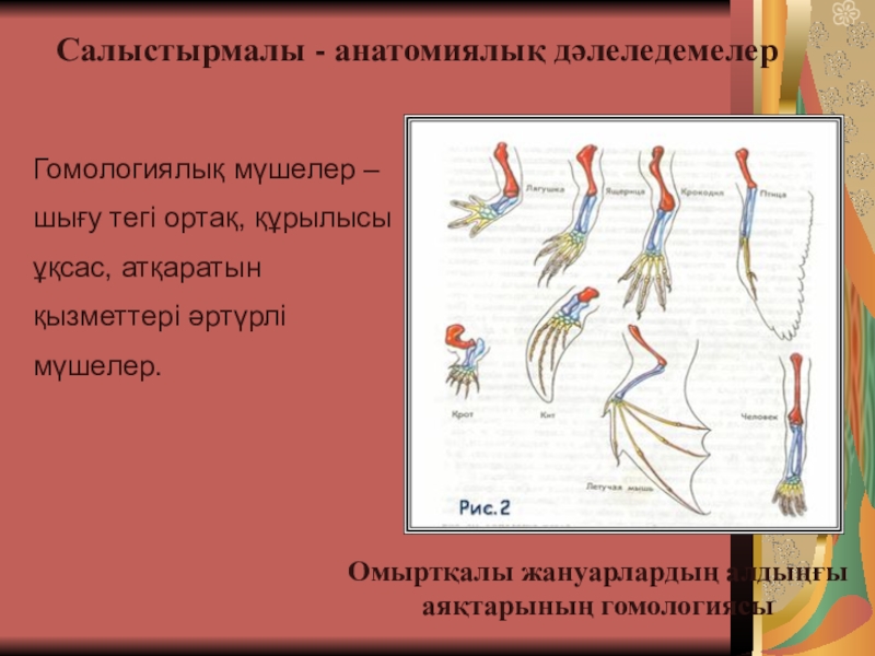 Омыртқалы жануарлардың алдыңғы аяқтарының гомологиясы