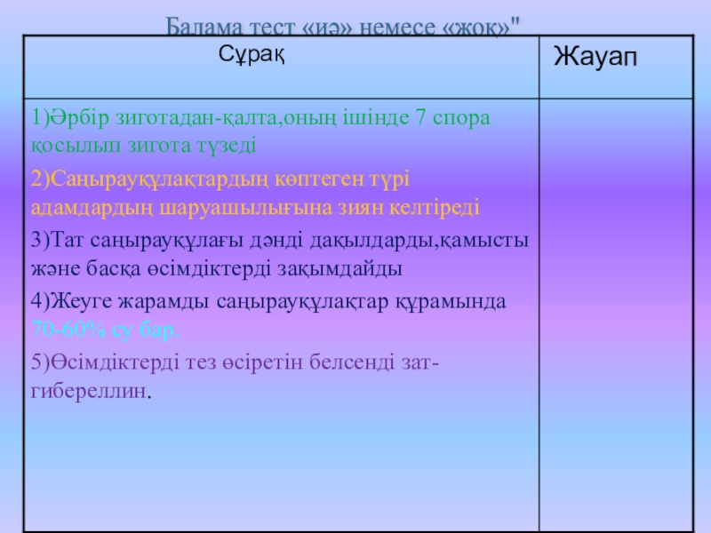Слайд 7Балама тест «иә» немесе «жоқ»"