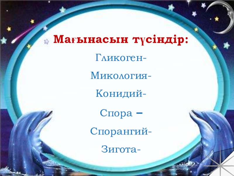 Мағынасын түсіндір:Гликоген-Микология-Конидий-Спора –Спорангий-Зигота-