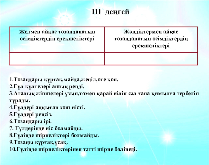 ойлаудың жоғары деңгейіне ұмтылады; оқушылар өздерінің қабілеттерін дамыта алады; өзін-өзі бағалай алады, өзін-өзі реттей алады; ақпараттық-коммуникациялық технологияны қолданып, ақпаратты таңдай алады.