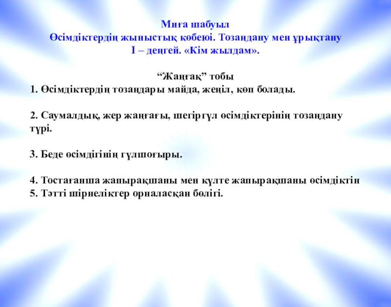 тақырып бойынша білімдерін өзектендіре алады; тақырыпты өз бетінше оқып, мазмұнын ұғына алады;