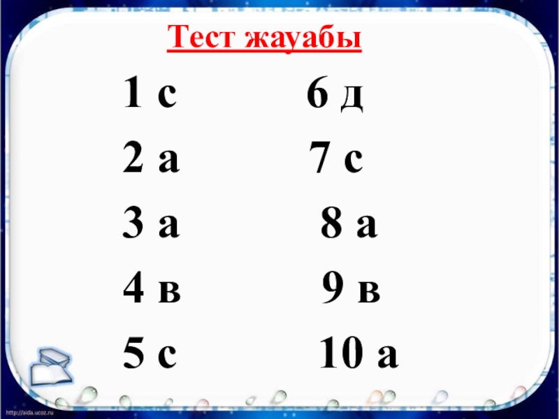 Слайд 3Тест жауабы