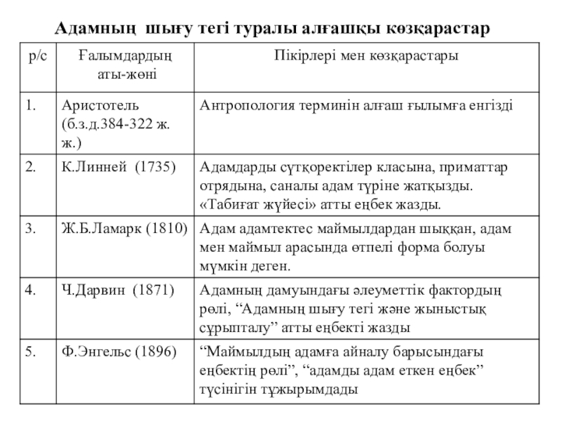 Слайд 10Адамның шығу тегі туралы алғашқы көзқарастар