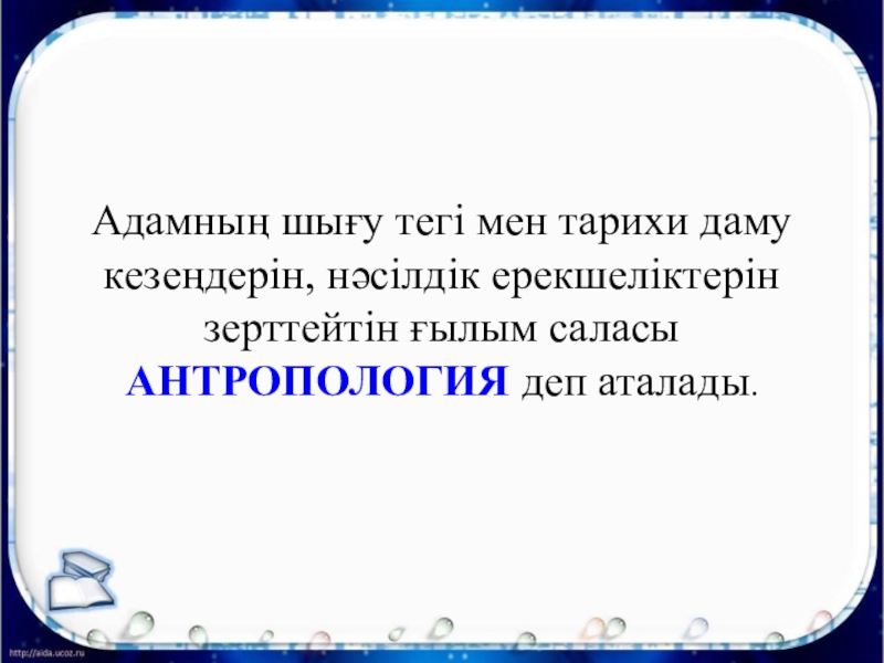 Слайд 9Адамның шығу тегі мен тарихи даму кезеңдерін, нәсілдік ерекшеліктерін зерттейтін ғылым