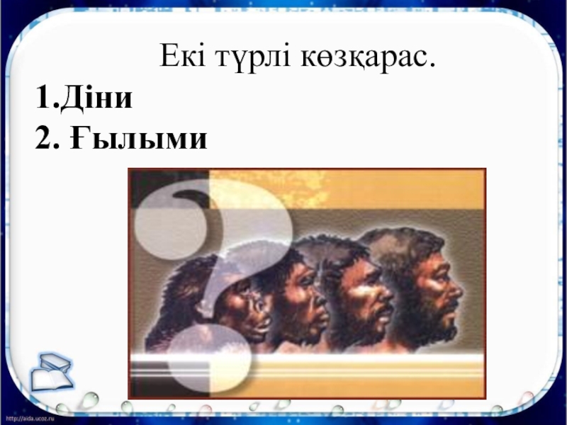 Екі түрлі көзқарас.1.Діни  2. Ғылыми
