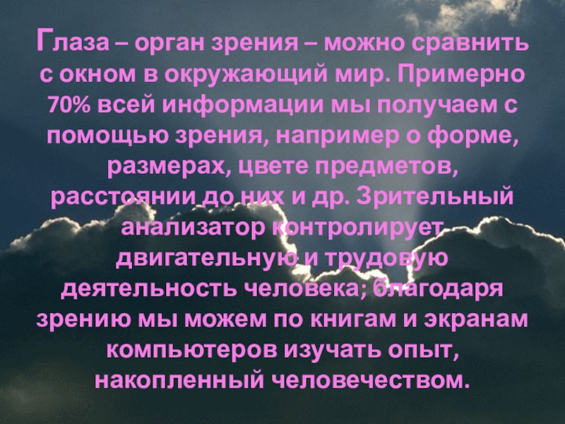Слайд 3Глаза – орган зрения – можно сравнить с окном в окружающий