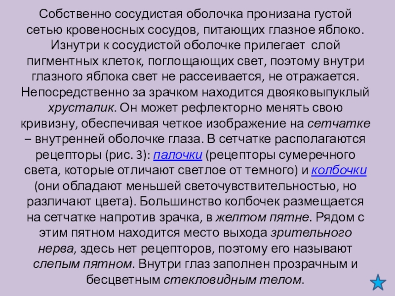 Слайд 9Собственно сосудистая оболочка пронизана густой сетью кровеносных сосудов, питающих глазное яблоко.