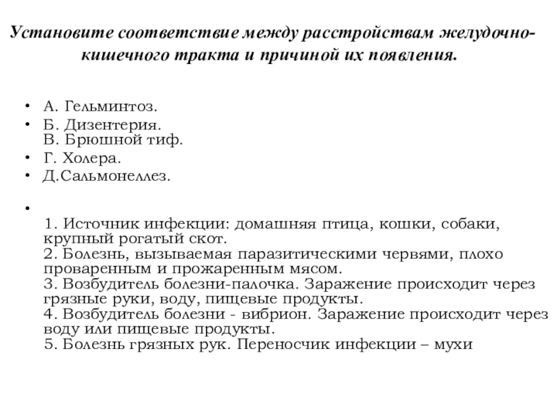 Установите соответствие между расстройствам желудочно-кишечного тракта и причиной их появления.