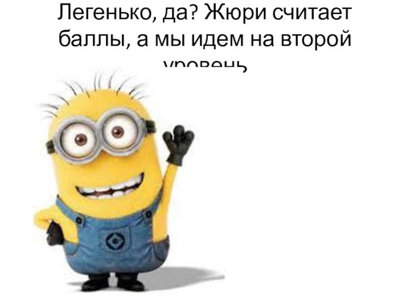 Слайд 9Легенько, да? Жюри считает баллы, а мы идем на второй уровень