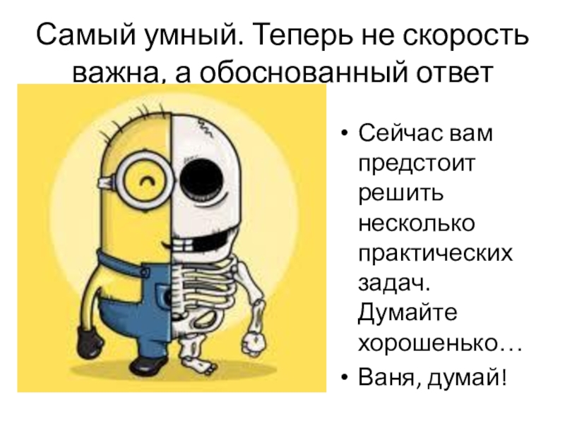 Слайд 16Самый умный. Теперь не скорость важна, а обоснованный ответ