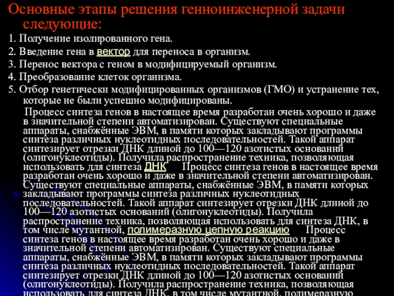 Слайд 6Основные этапы решения генноинженерной задачи следующие: