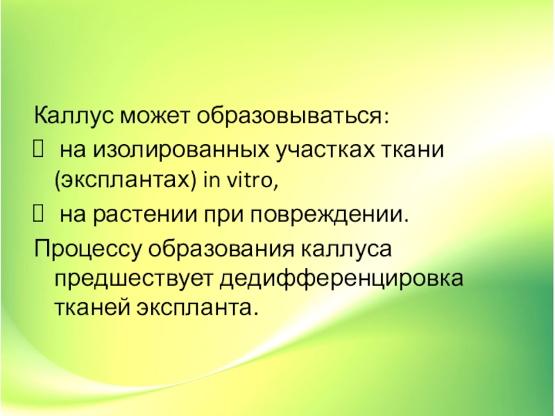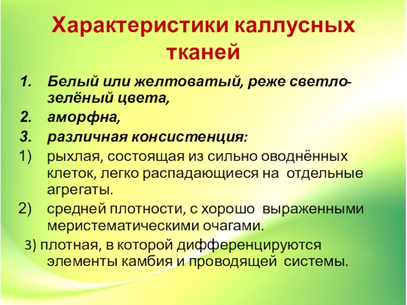 Культура изолированных тканей обычно бывает представлена каллусными.