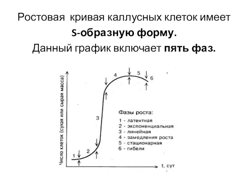 Слайд 24Ростовая кривая каллусных клеток имеет