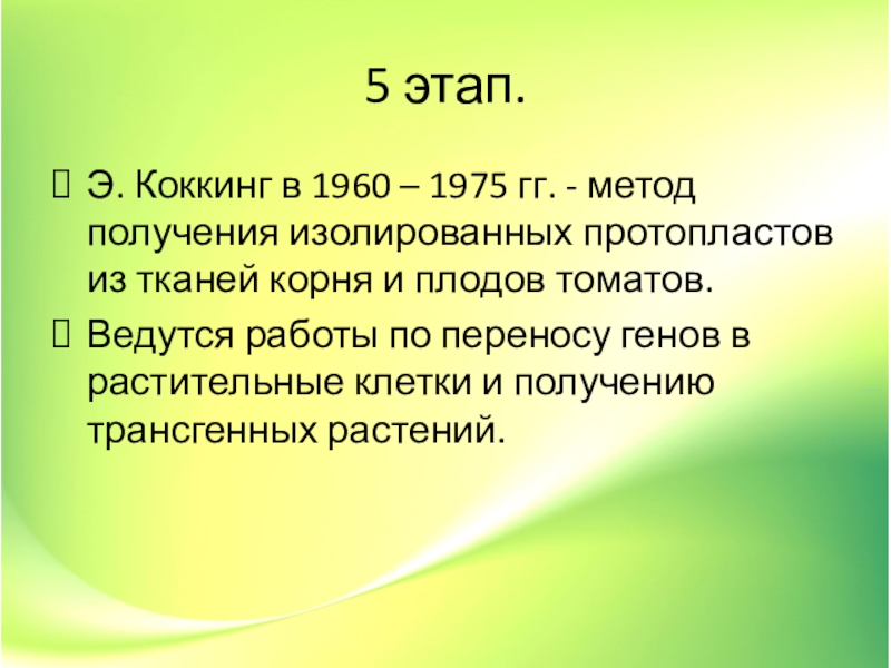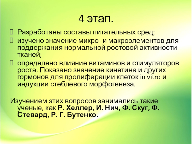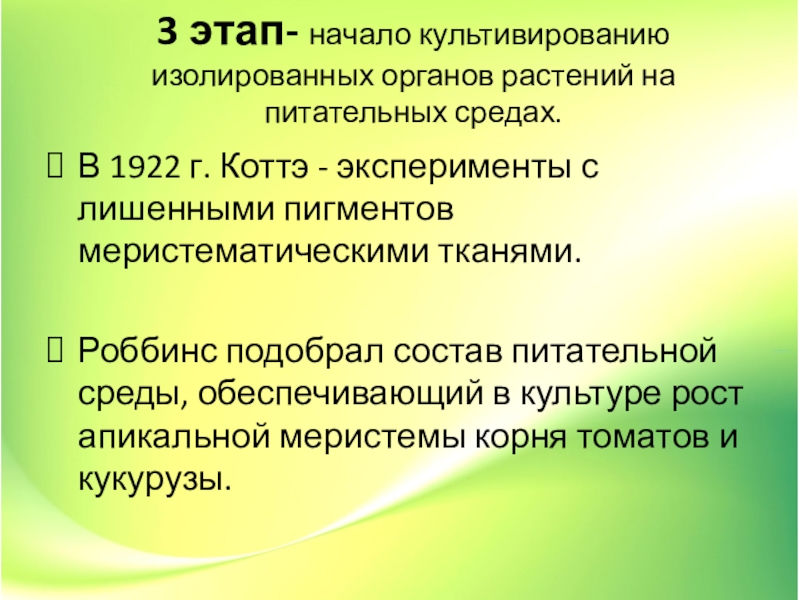 Слайд 103 этап- начало культивированию изолированных органов растений на питательных средах.