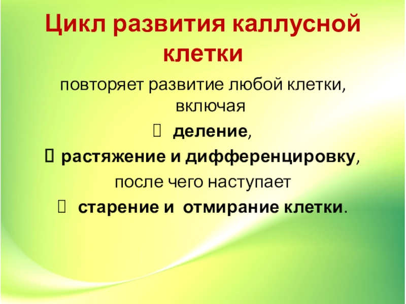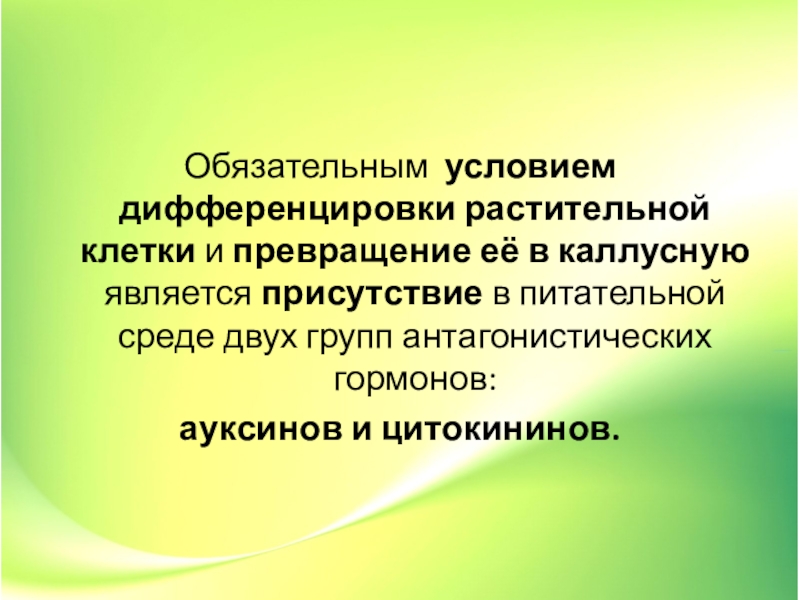 Слайд 21Обязательным условием дифференцировки растительной клетки и превращение её в каллусную является