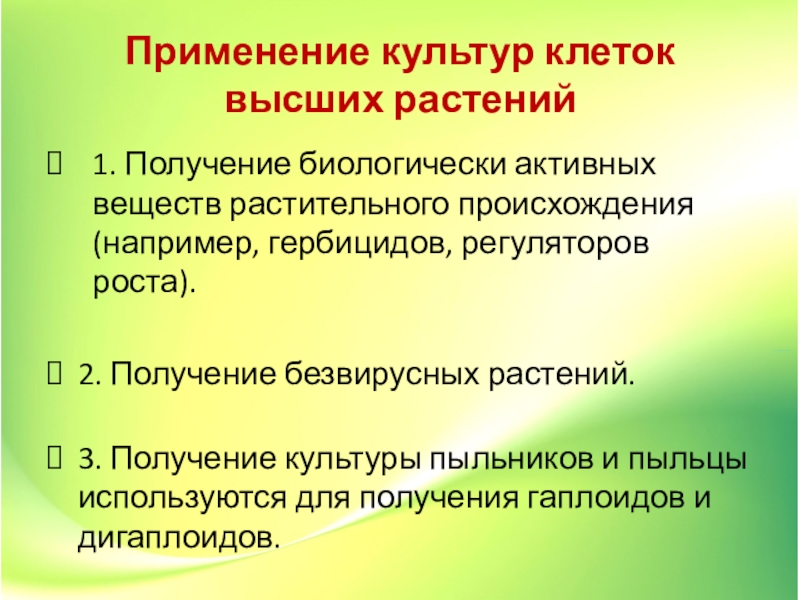 3. Получение культуры пыльников и пыльцы используются для получения гаплоидов и дигаплоидов.
