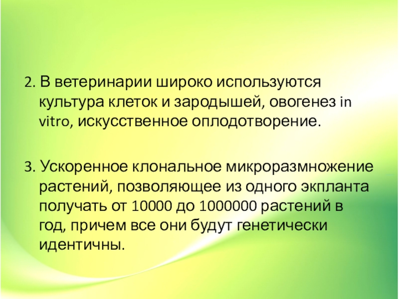 Слайд 62. В ветеринарии широко используются культура клеток и зародышей, овогенез in