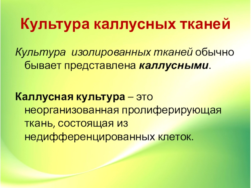Слайд 1КУЛЬТУРА КАЛЛУСНЫХ ТКАНЕЙ