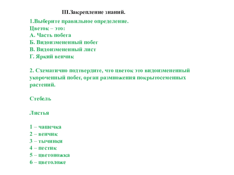 2. Схематично подтвердите, что цветок это видоизмененный укороченный побег, орган размножения покрытосеменных растений.