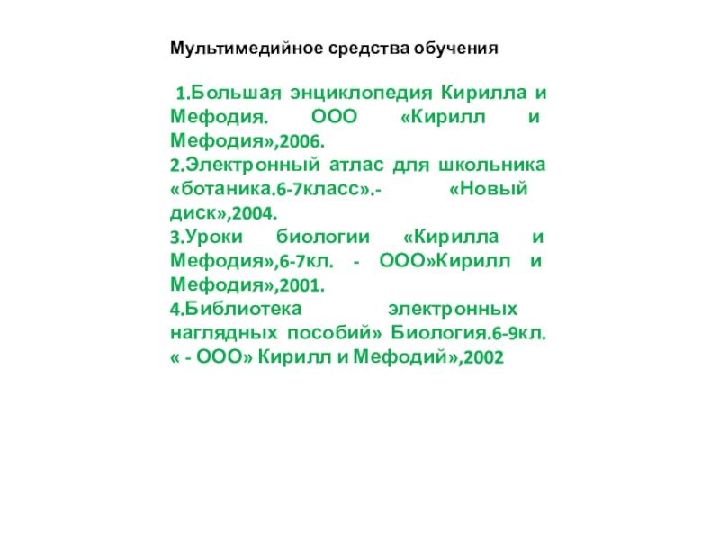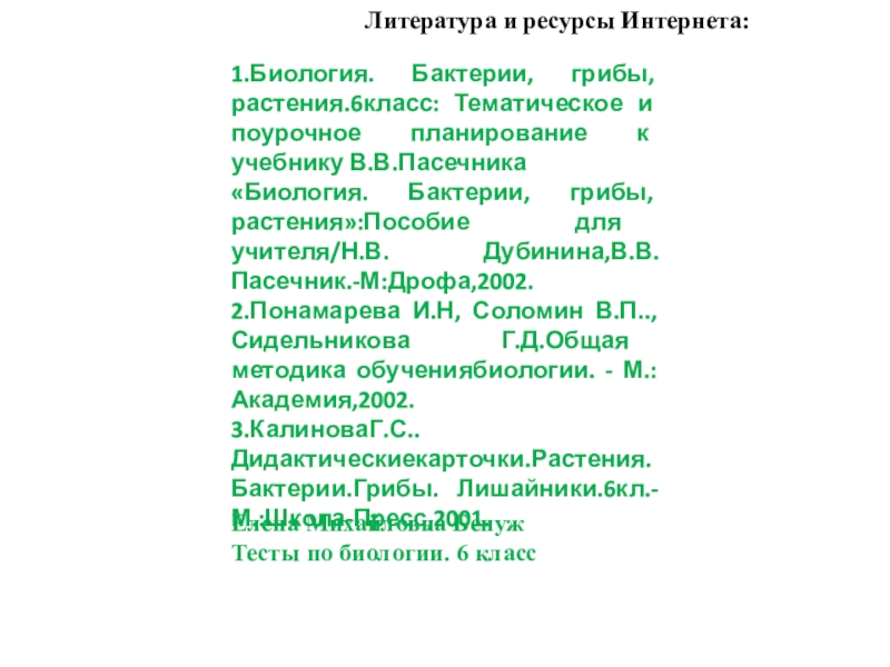 «Биология. Бактерии, грибы, растения»:Пособие для учителя/Н.В. Дубинина,В.В.Пасечник.-М:Дрофа,2002.