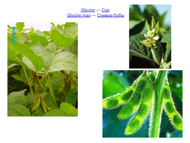 Слайд 13Glycine — Соя Glycine max — Соевые бобы