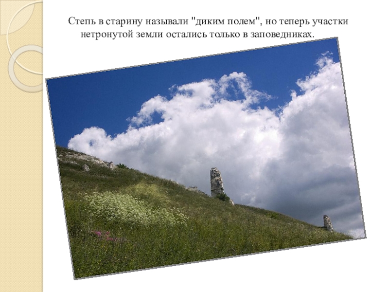 Слайд 4Степь в старину называли "диким полем", но теперь участки нетронутой земли