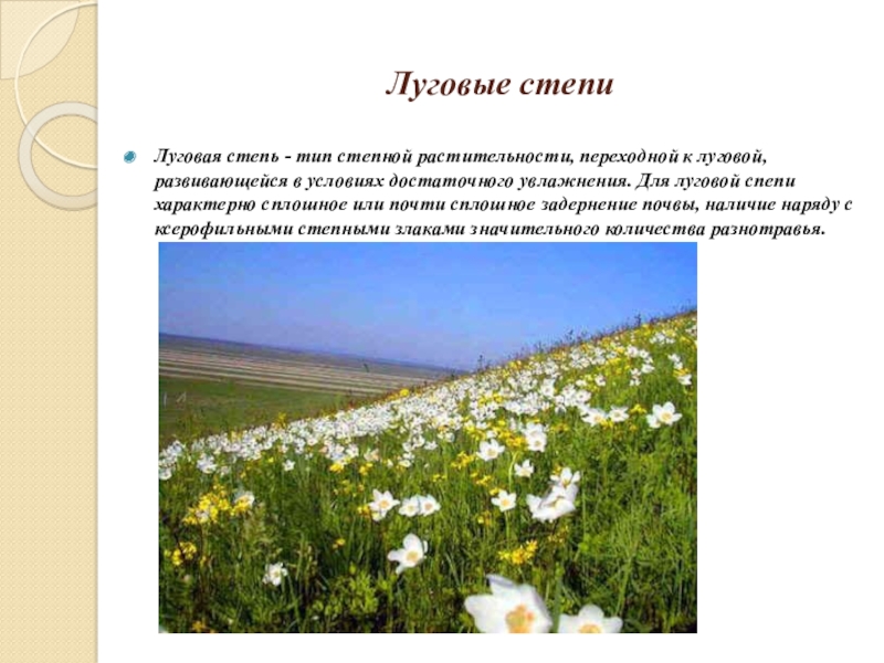 Луговая степь - тип степной растительности, переходной к луговой, развивающейся