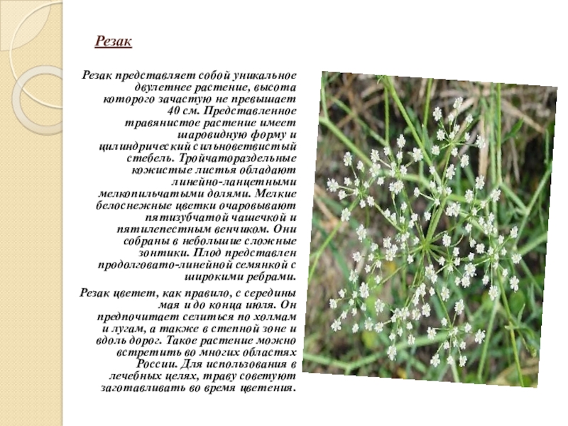 Резак представляет собой уникальное двулетнее растение, высота которого зачастую не превышает 40