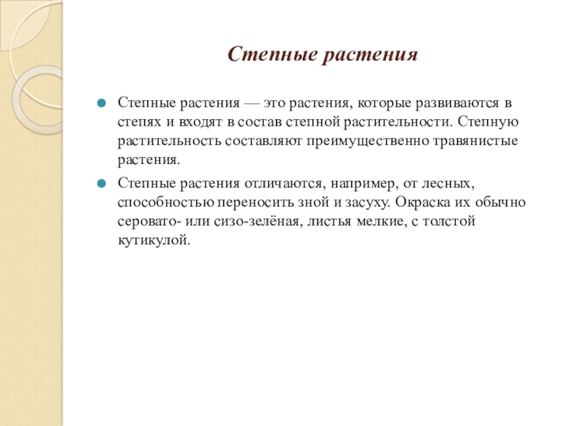 входят в состав степной растительности. Степную растительность составляют преимущественно травянистые растения.