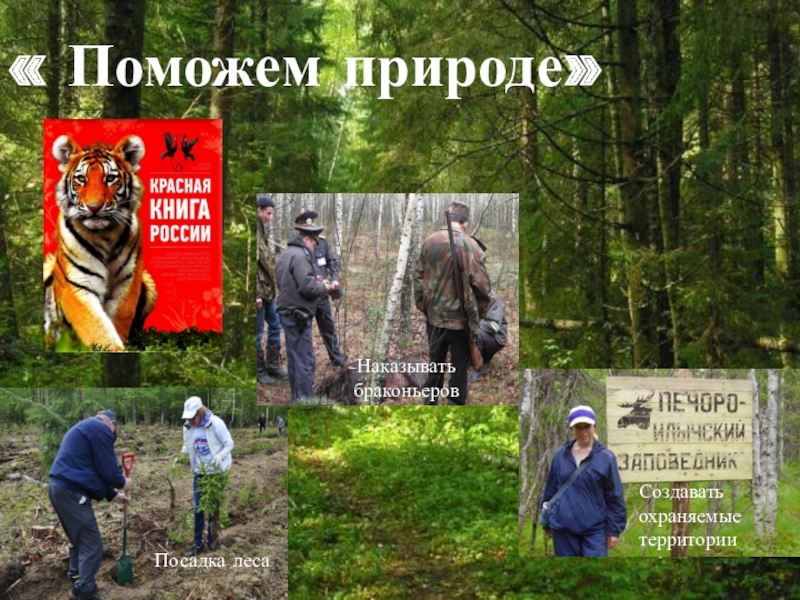 « Поможем природе»Посадка лесаНаказывать браконьеровСоздавать охраняемые территории