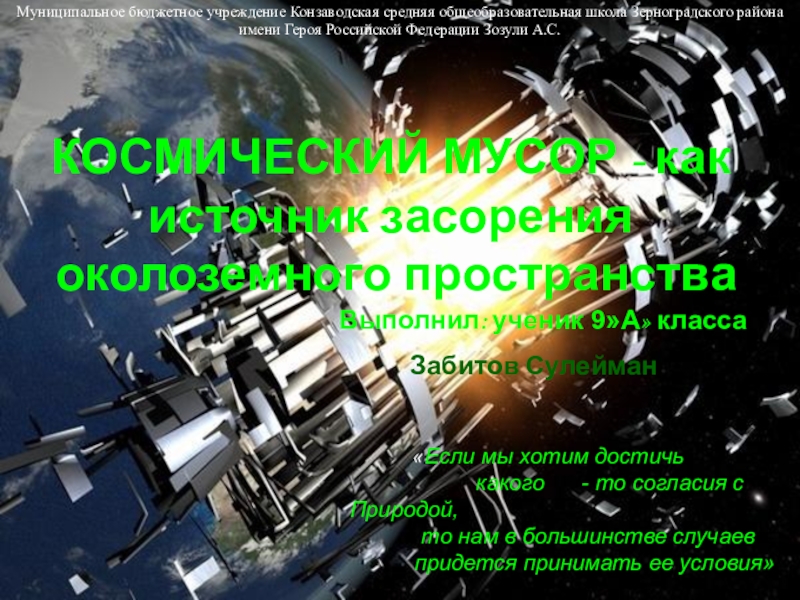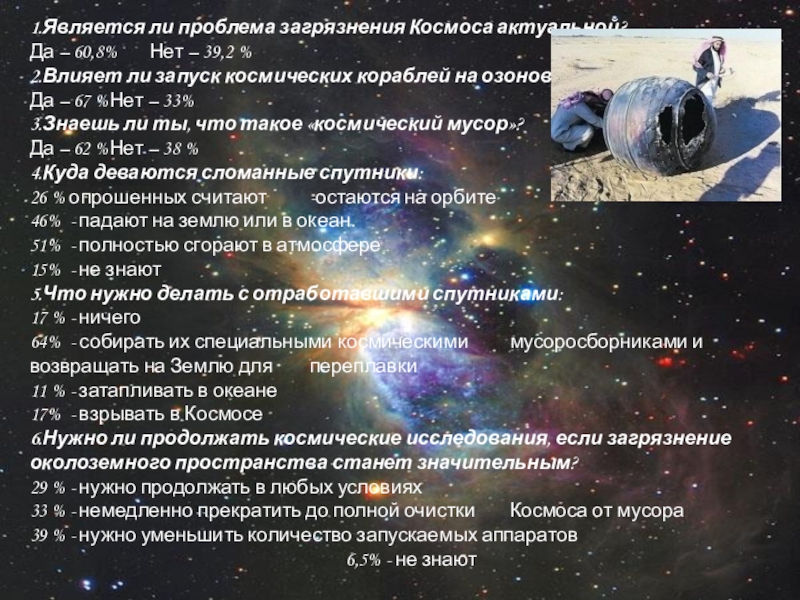 КОСМИЧЕСКИЙ МУСОР - как источник засорения околоземного пространства