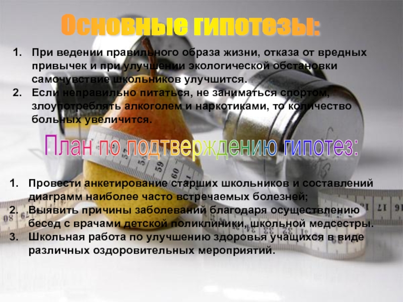 Уменьшить процент болезненности старших школьников и провести профилактические меры