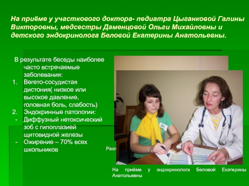 На приёме у эндокринолога Беловой Екатерины Анатольевны