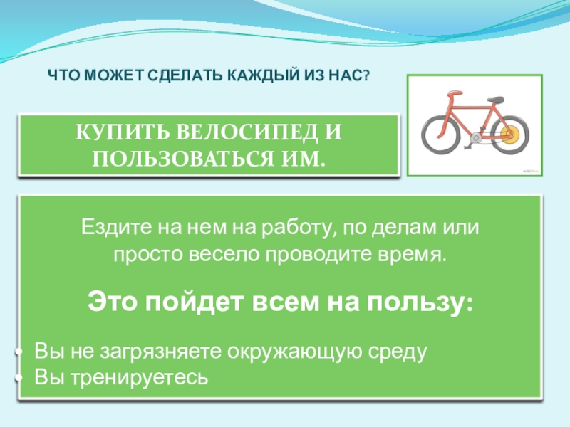 Слайд 11КУПИТЬ ВЕЛОСИПЕД И ПОЛЬЗОВАТЬСЯ ИМ.