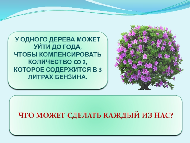 У ОДНОГО ДЕРЕВА МОЖЕТ УЙТИ ДО ГОДА, ЧТОБЫ КОМПЕНСИРОВАТЬ КОЛИЧЕСТВО CO 2, КОТОРОЕ СОДЕРЖИТСЯ В 3 ЛИТРАХ