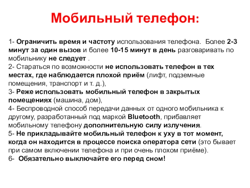 3- Реже использовать мобильный телефон в закрытых помещениях (машина, дом),