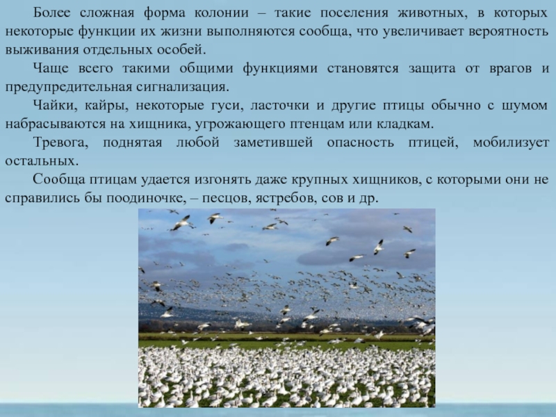 Слайд 8 Более сложная форма колонии – такие поселения животных, в которых некоторые