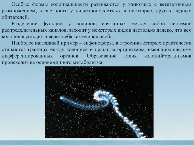 Слайд 15 Особые формы колониальности развиваются у животных с вегетативным размножением, в частности