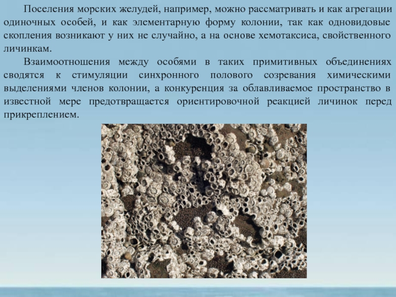 Слайд 7 Поселения морских желудей, например, можно рассматривать и как агрегации одиночных особей,