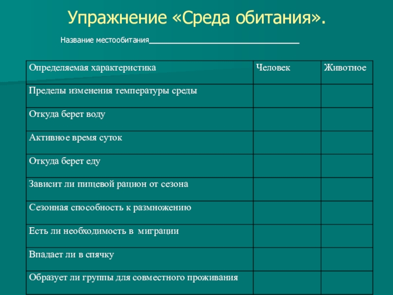 Слайд 5Упражнение «Среда обитания».