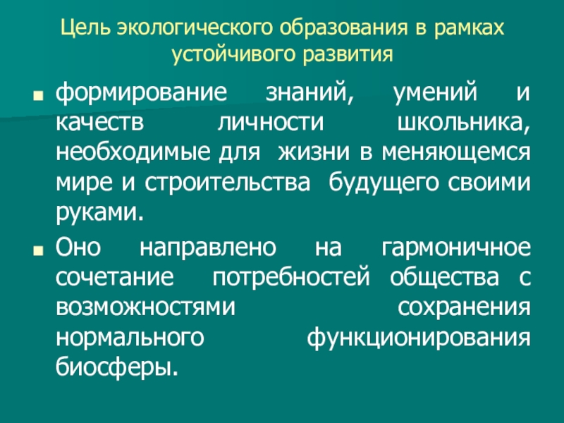 Слайд 4Цель экологического образования в рамках устойчивого развития